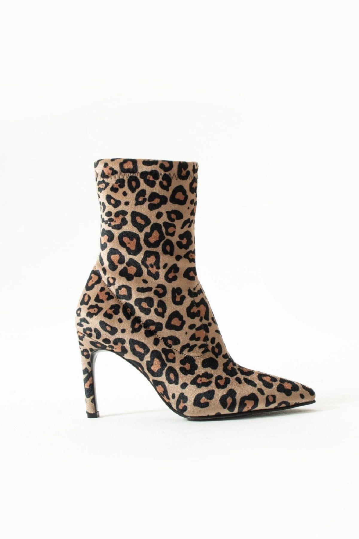 La limar leopar streç 8.5 cm orta boy kadın topuklu bot 5930